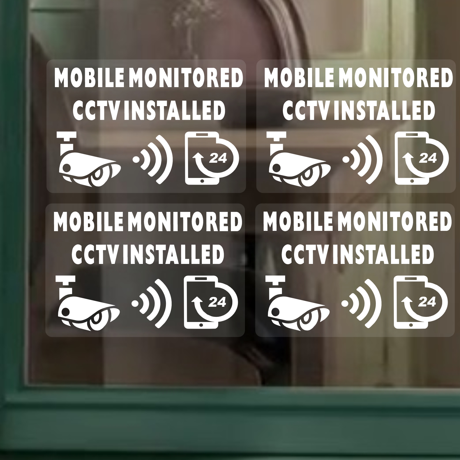 Perfect for use on windows, doors, and entry points, whether at home, in the office, or across workplace environments, these protective signs serve as an effective deterrent against trespassing, theft, and unwanted intrusion. The bold graphics and easy-to-read text ensure that anyone approaching is fully aware of 24/7 camera monitoring and mobile-enabled CCTV recording.