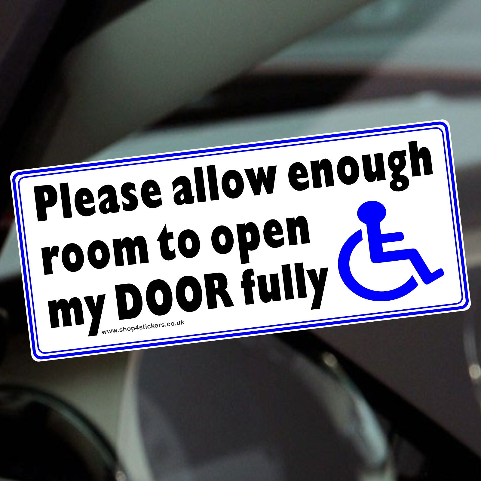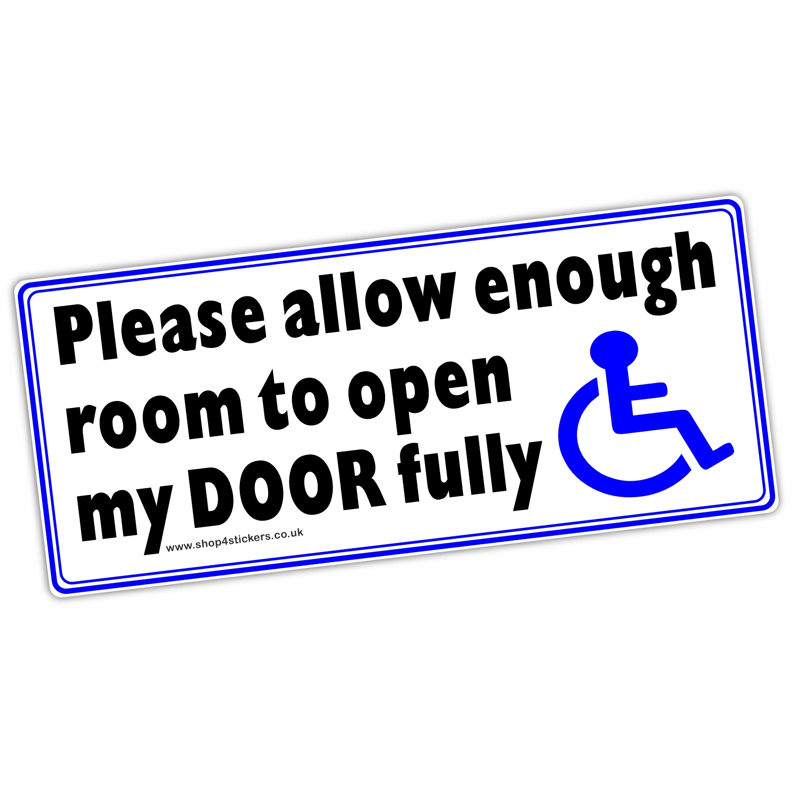 DF1 Sticker Please Allow Enough Room To Open My Door Fully Disabled Sign Car Window Vehicle Disability Mobility Leave Space Self Adhesive Vinyl Handicapped Handicap Parking Awareness Logo Decal Label