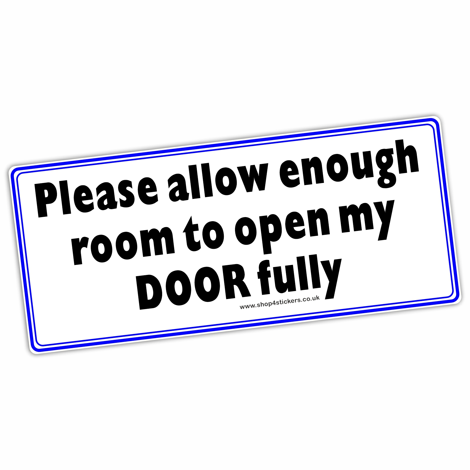 Sticker Design:      Please Allow Enough Room To Open My Door Fully